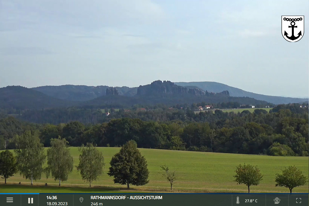 Zwischen Sonnenaufgang und 13.00 Uhr ist das Panorama von Rathmannsdorf, über die großen Tafelberge Königstein und Lilienstein bis hin zum Basteigebiet zu sehen. Die Nachmittagsstunden bis zum Sonnenuntergang zeigen das traumhafte Panorama von Falkenstein, über die Schrammsteinkette bis zum Zirkelstein und Großen Winterberg.